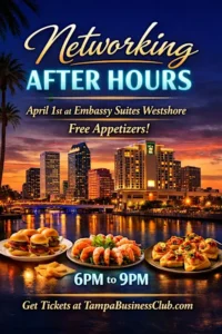 NETWORKING AFTER-HOURS AT EMBASSY SUITES WESTSHORE. Come join us for a fun evening of networking at embassy suites WESTSHORE! Meet new people, enjoy delicious drinks, and unwind after a long day.