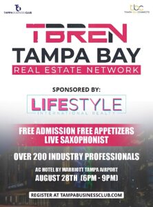 August 28 | 6–9 PM | AC Hotel Tampa Airport Tampa’s real estate scene is buzzing—and the place to be this August is the Tampa Bay Real Estate Network Networking Social at the sophisticated AC Hotel Tampa Airport.