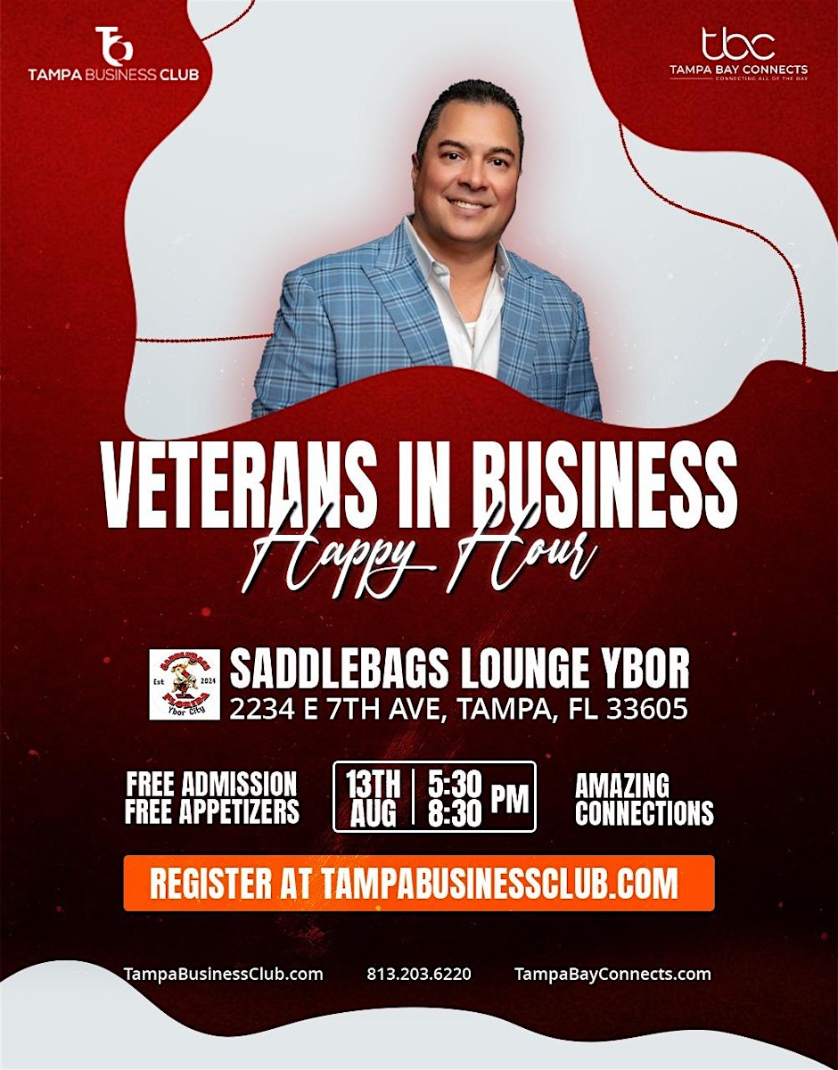 VETERANS JOIN US @ the Veteran's in Business happy hour @Saddlebags Ybor. Free admission appetizers & amazing connections. ALL VET INVITED.