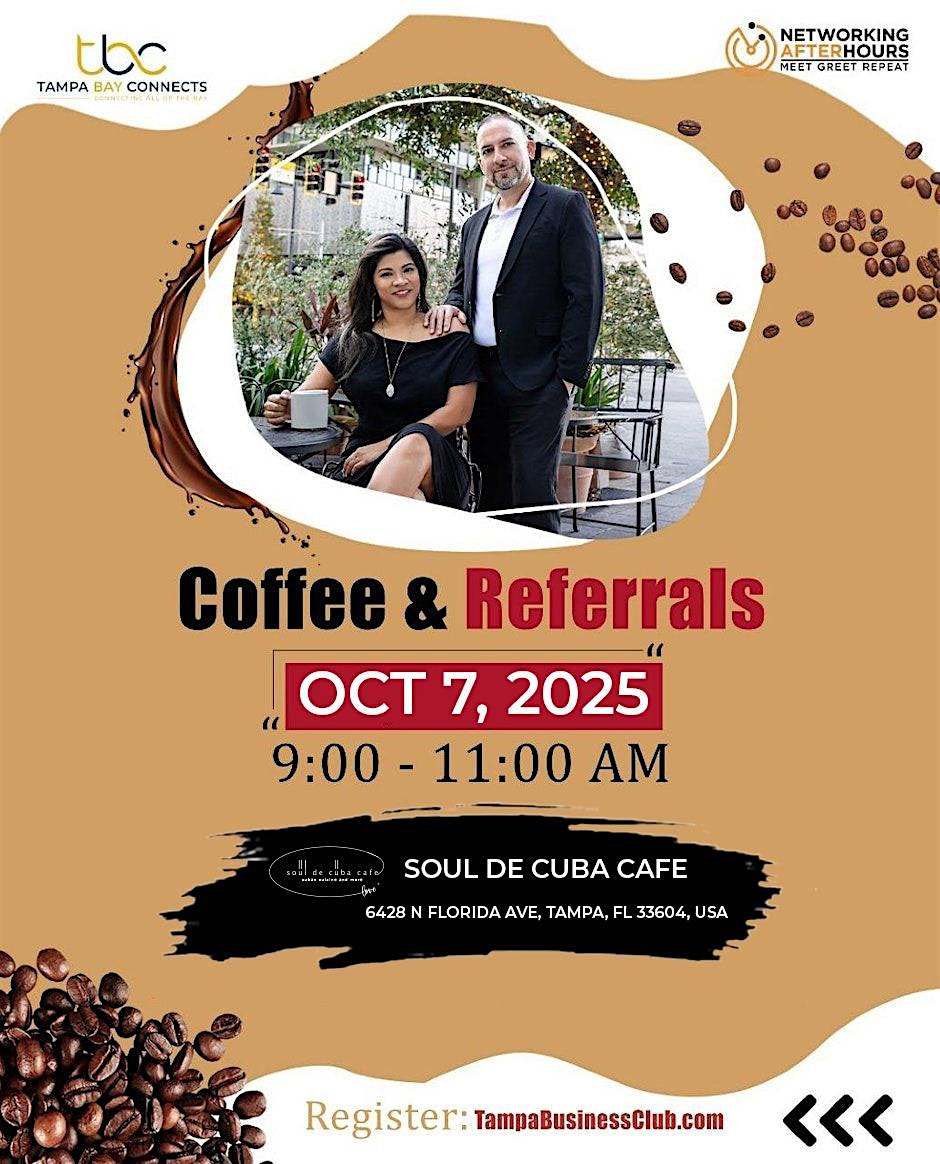 Ready to energize your morning, grow your network, and connect with fellow professionals in a vibrant local setting? Don’t miss Coffee & Referrals – Seminole Heights, happening Tuesday, October 7 from 9:00 AM to 11:00 AM at the cozy and culturally rich Soul de Cuba Café, right in the heart of Tampa. This isn't your […]